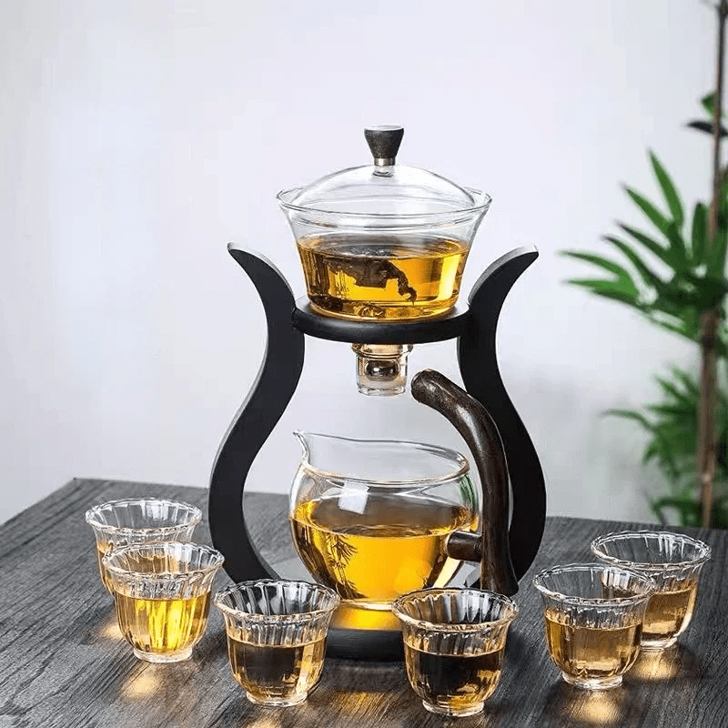 Ce Gaiwan en Verre avec Support se distingue par son système ingénieux permettant au thé de s’écouler délicatement dans la théière inférieure. Lorsque l’infusion atteint la perfection, il suffit d’actionner la valve pour laisser le thé se verser proprement. Ce mécanisme garantit un service sans éclaboussures et un contrôle total du moment où l’infusion s’arrête.