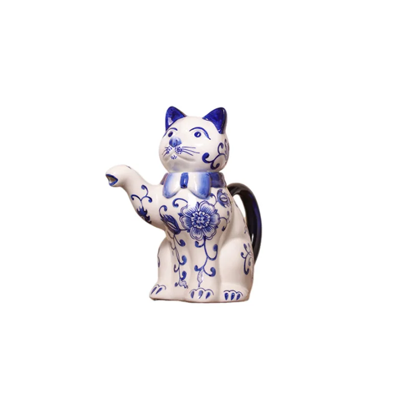 La Théière Céramique en Forme de Chat se démarque immédiatement par son apparence ludique et artistique. Inspirée du style porcelaine bleu et blanc, elle combine un motif floral délicat avec une silhouette de chat assis, la patte levée comme un signe d’accueil et de chance. Ce design unique apporte une atmosphère chaleureuse et joyeuse à chaque moment de dégustation.