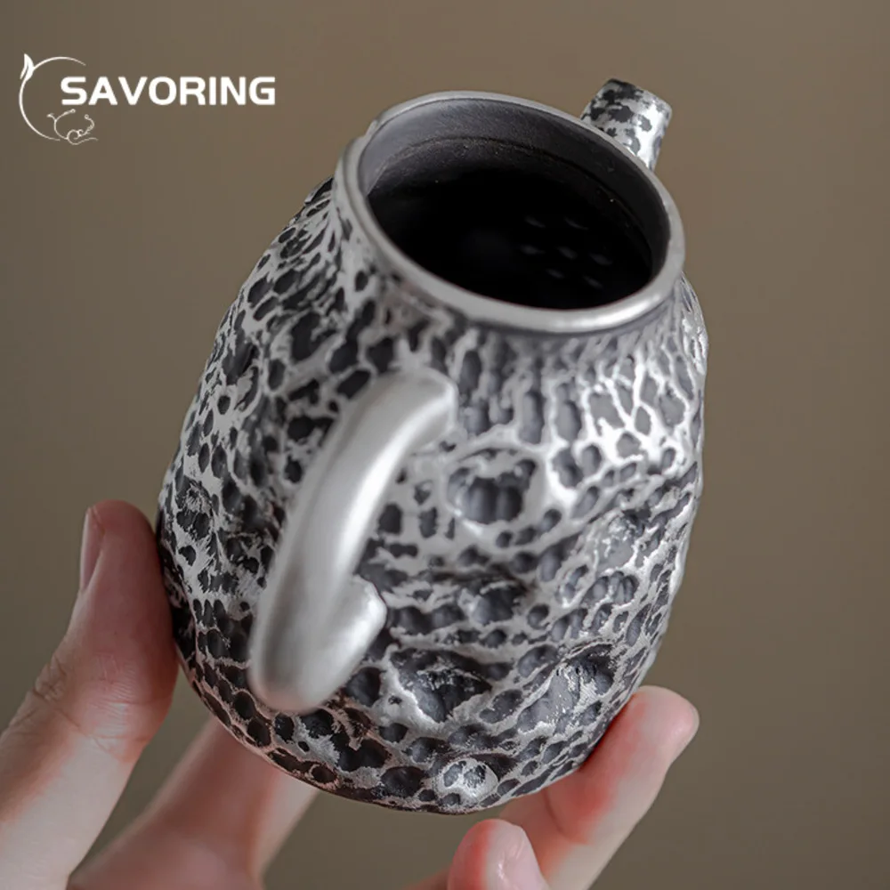 Compacte et ergonomique, elle est pensée pour être agréable à manipuler et pour verser sans effort. Sa petite contenance en fait un choix parfait pour les infusions personnelles, permettant de savourer chaque tasse avec une attention particulière. La combinaison de sa texture soignée et de son éclat doré en fait une œuvre d’art qui attire le regard dès qu’elle est posée sur une table.