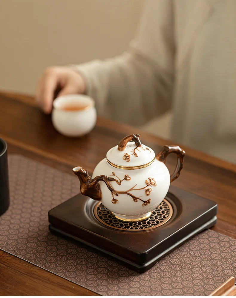 Théière en porcelaine d’art de fleur de prunier faite à la main 300 ml : l’élégance qui sublime chaque infusion