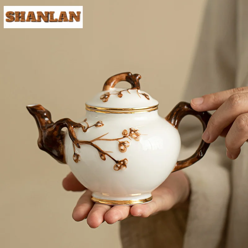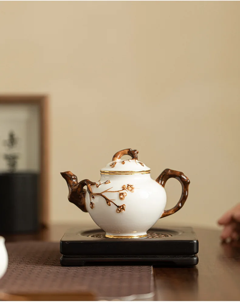 Théière en porcelaine d’art de fleur de prunier faite à la main 300 ml : l’élégance qui sublime chaque infusion