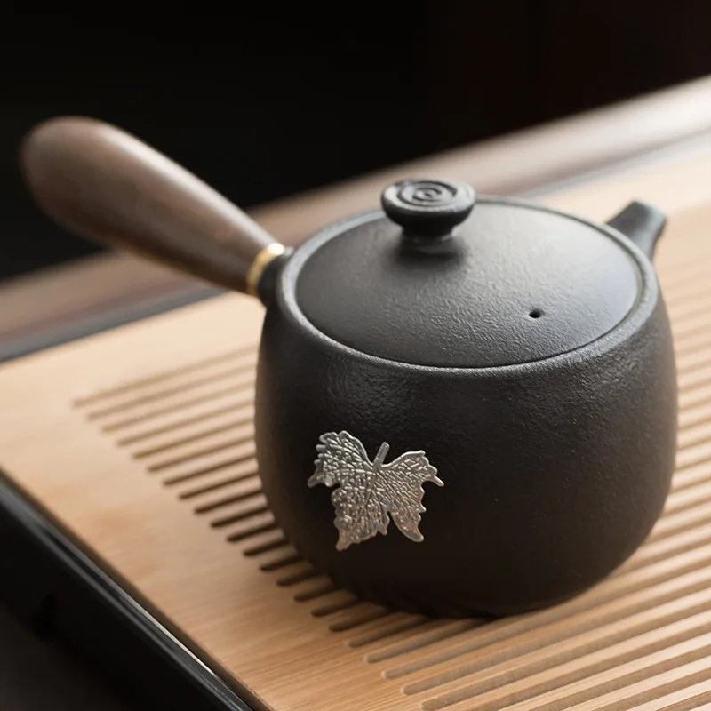 La porcelaine noire ne se contente pas d’être belle : elle sublime le thé. Grâce à sa texture lisse et sa capacité à maintenir la chaleur, cette théière révèle pleinement les arômes des feuilles infusées.