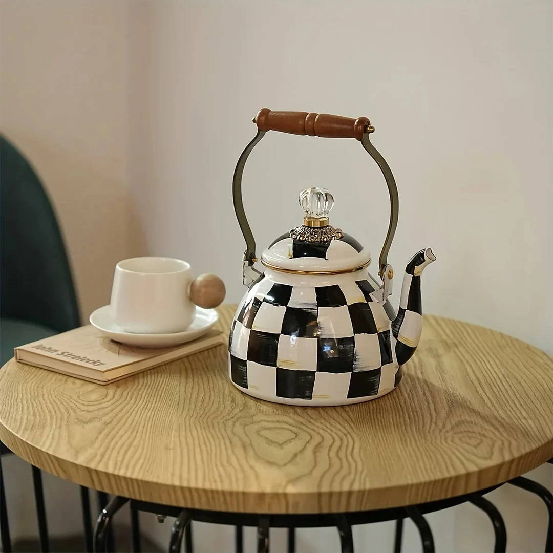 Parce qu’elle apporte une véritable atmosphère. Une théière comme celle-ci ne se contente pas d’infuser : elle crée un décor, une ambiance chaleureuse et pleine de caractère. Elle rappelle les après-midis doux, les biscuits sortis du four, les conversations tranquilles qui égrainent le temps. Grâce à son émail de qualité, elle garde la chaleur plus longtemps et préserve la saveur des thés noirs, Earl Grey, infusions fruitées ou tisanes maison. Sa taille généreuse devient un atout dans les moments de partage — elle invite à remplir, resservir, et prolonger les instants précieux. Elle est à la fois simple, nostalgique et étonnamment moderne dans son utilisation.